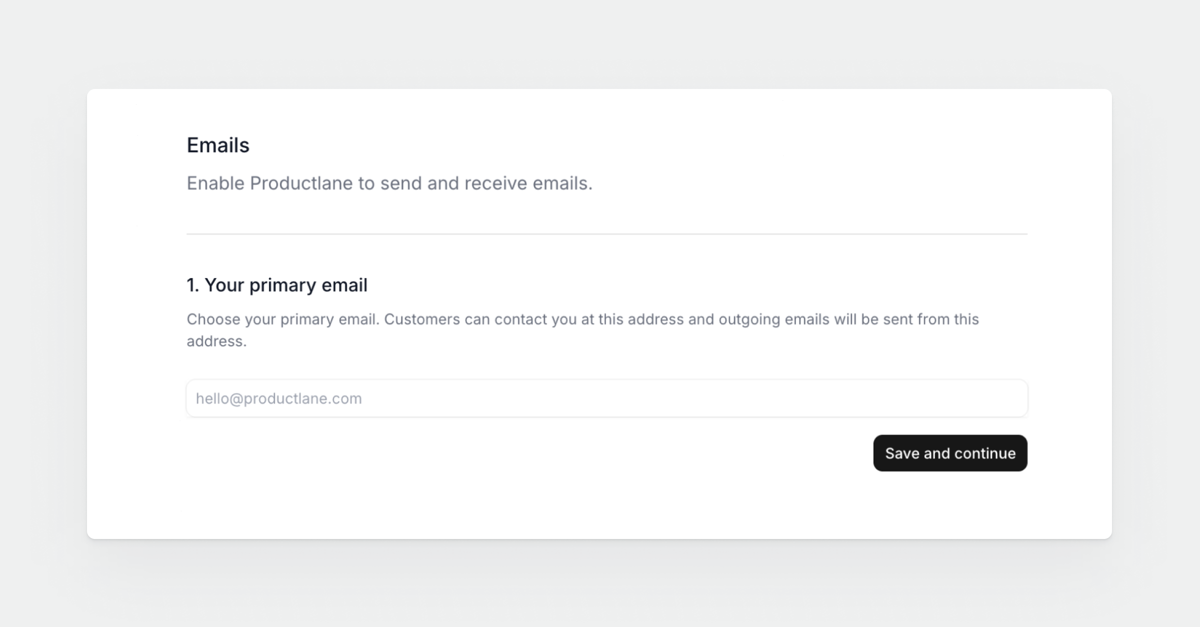 Click Enable emails and start using Productlane as your shared email inbox for customer support.